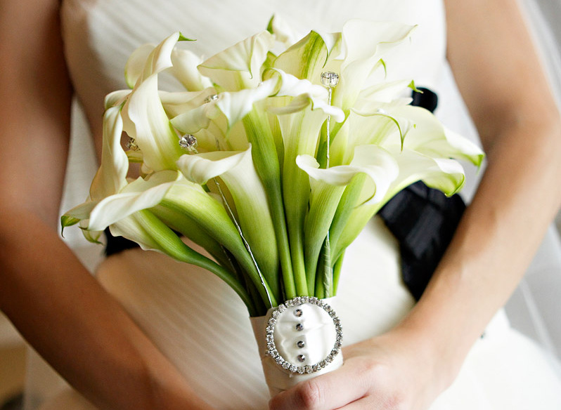 Tra i tre fiori più adatti alla sposa glamour c’è sicuramente la calla, non obbligatoriamente bianca, anzi, colori più caldi come il porpora e il prugna sarebbero ancora più adatti; un bouquet con questo fiore così elegante e raffinato può essere addobbato con piccoli gioielli e brillanti, in modo da creare un effetto ancora più chic.