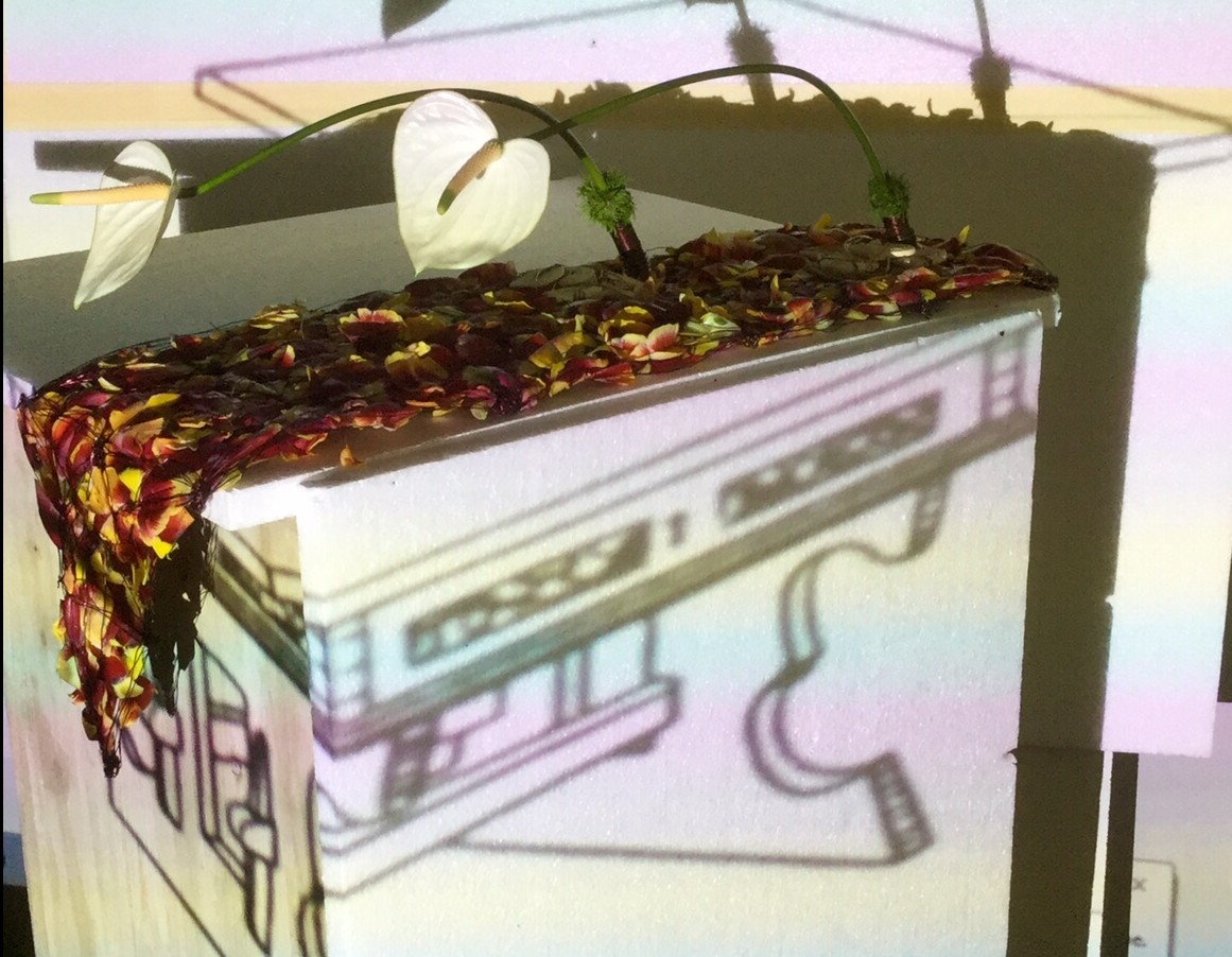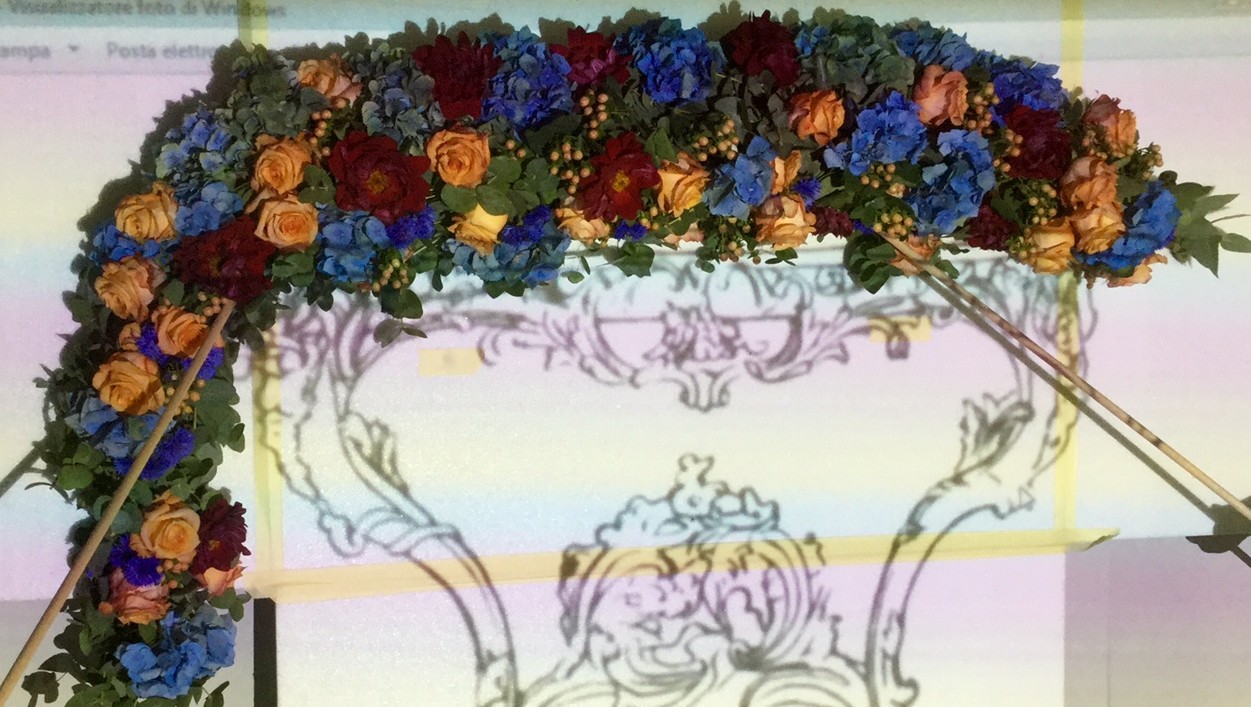 L’obiettivo è stato quello di realizzare elaborati floreali in tema con il mobile assegnato, che si integrassero a questo e non solo banalmente lo decorassero; integrazione, coerenza e simbiosi con lo stile ed il design sono stati la peculiarità dello studio progettuale. L’immagine del mobile, proiettata sul muro in formato quasi originale, ha permesso di valutare la reale integrazione dell’elaborato floreale secondo i parametri richiesti.